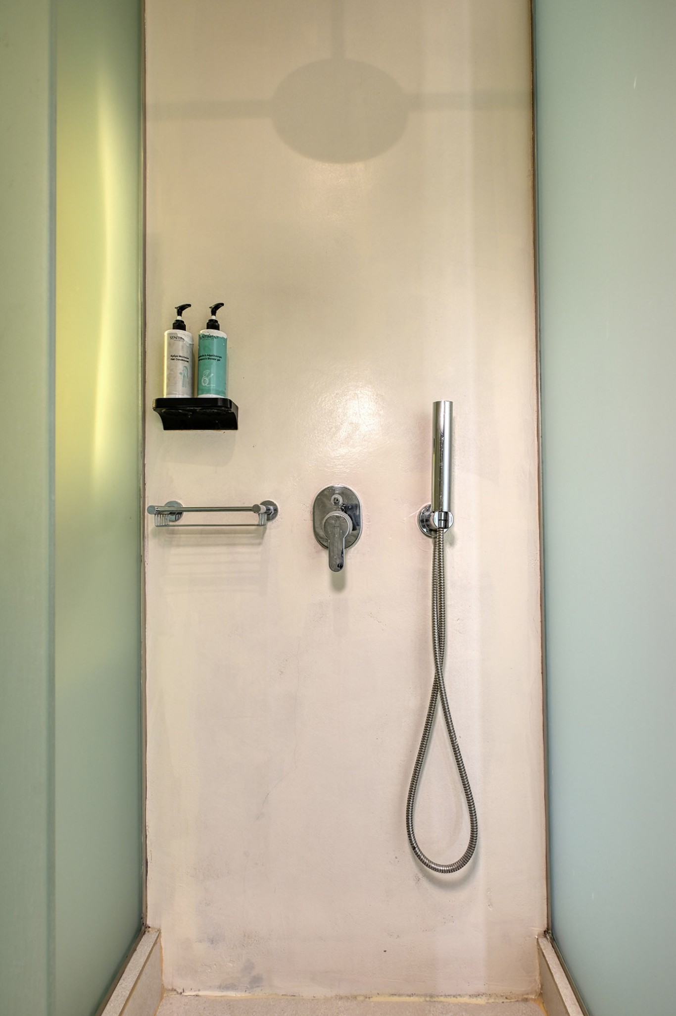 The smooth cement plaster walls and built-in minimalist furnishings create an airy yet cozy atmosphere, blending contemporary style with timeless island charm. Rest deeply on a plush king-size bed. The bathroom is designed for indulgence, featuring a hydro-massage tub alongside a separate rainfall shower and a dedicated WC, giving you the ultimate space to relax and refresh.
